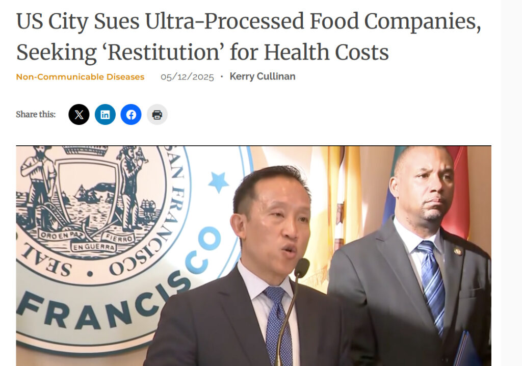 San Francisco just launched a massive, historical lawsuit against ten companies that manufacture Ultra Processed Food – UPFs.